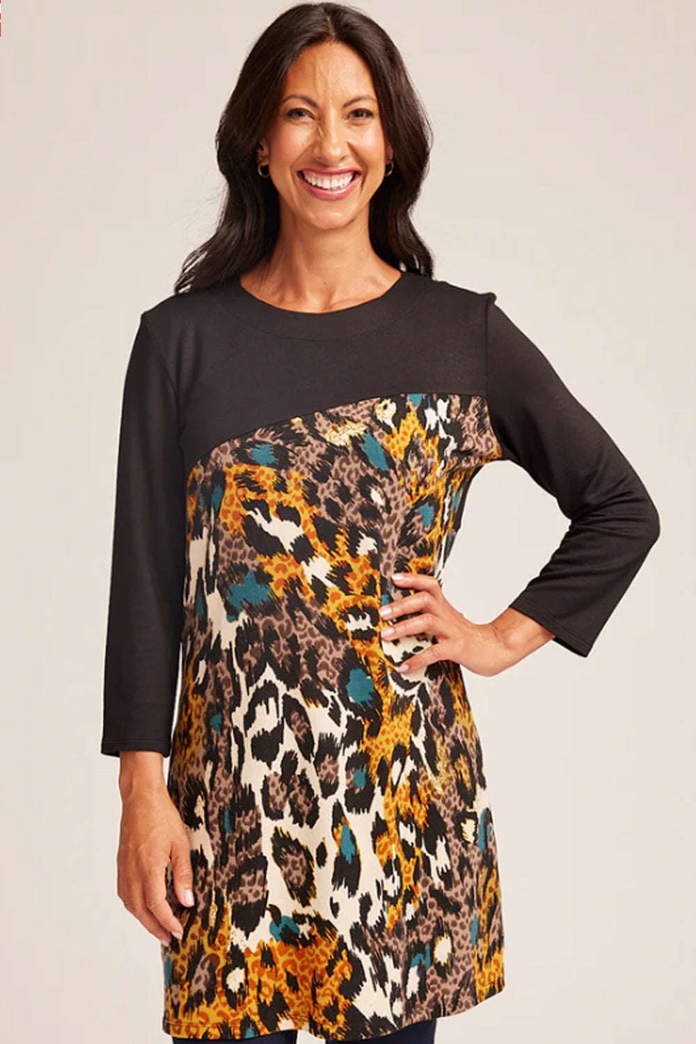 Animal Print Soft Touch Colour Block Tunic