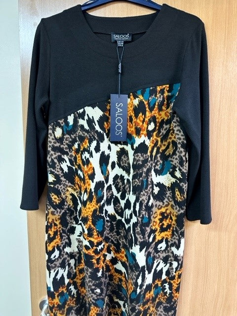 Animal print soft touch colour block tunic top with full length sleeves.