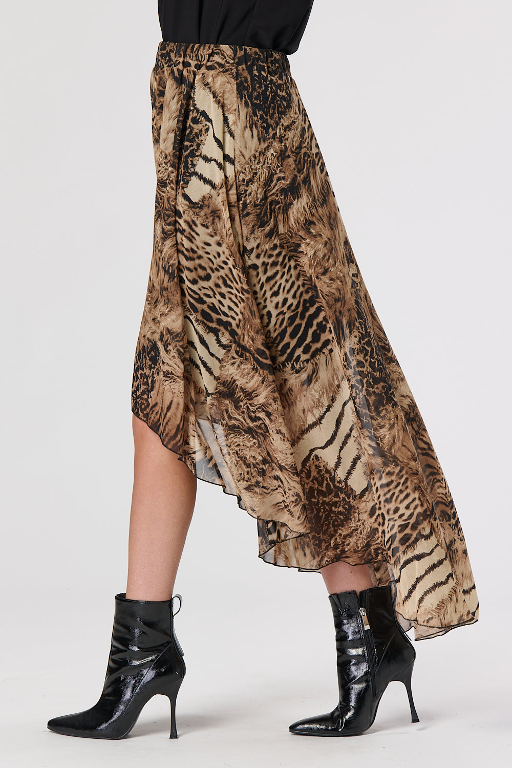 Animal Print Chiffon Elliptical Hem Skirt