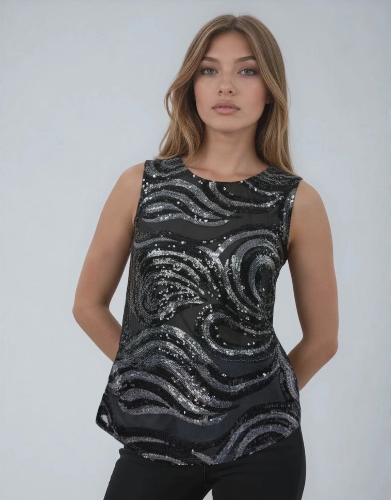 Heavy sequin christmas sleeveless top. Fully Lined. Plain Back.