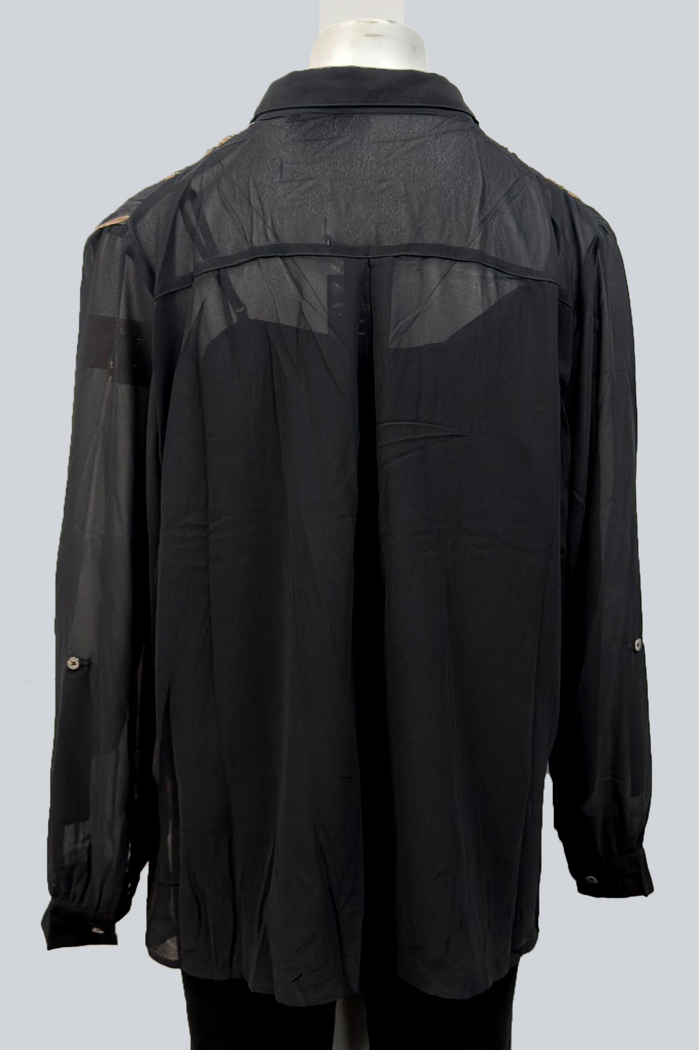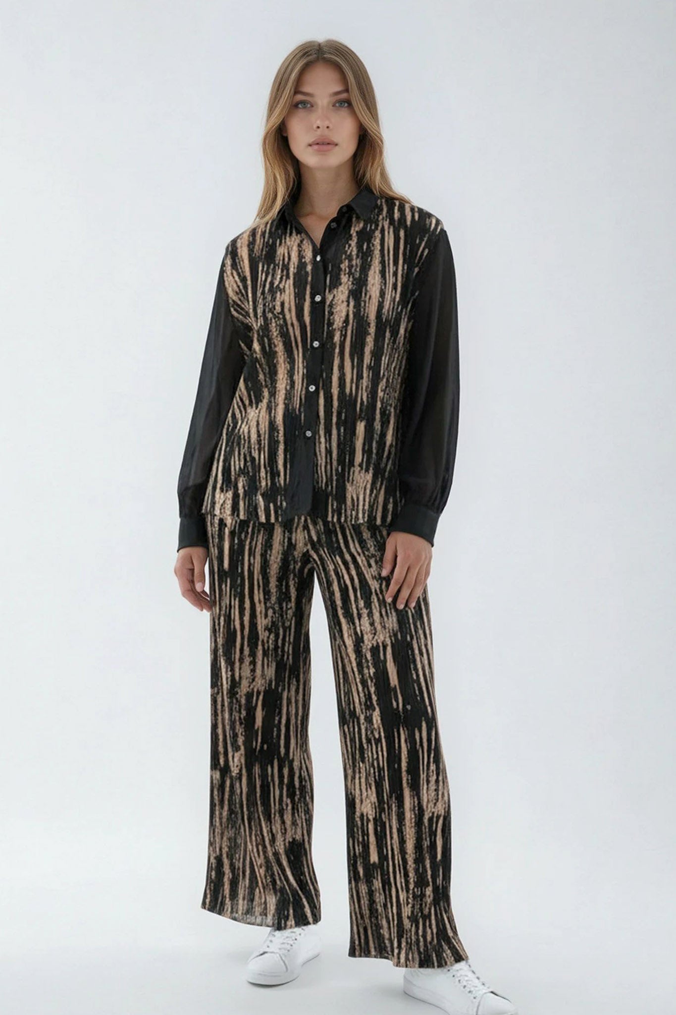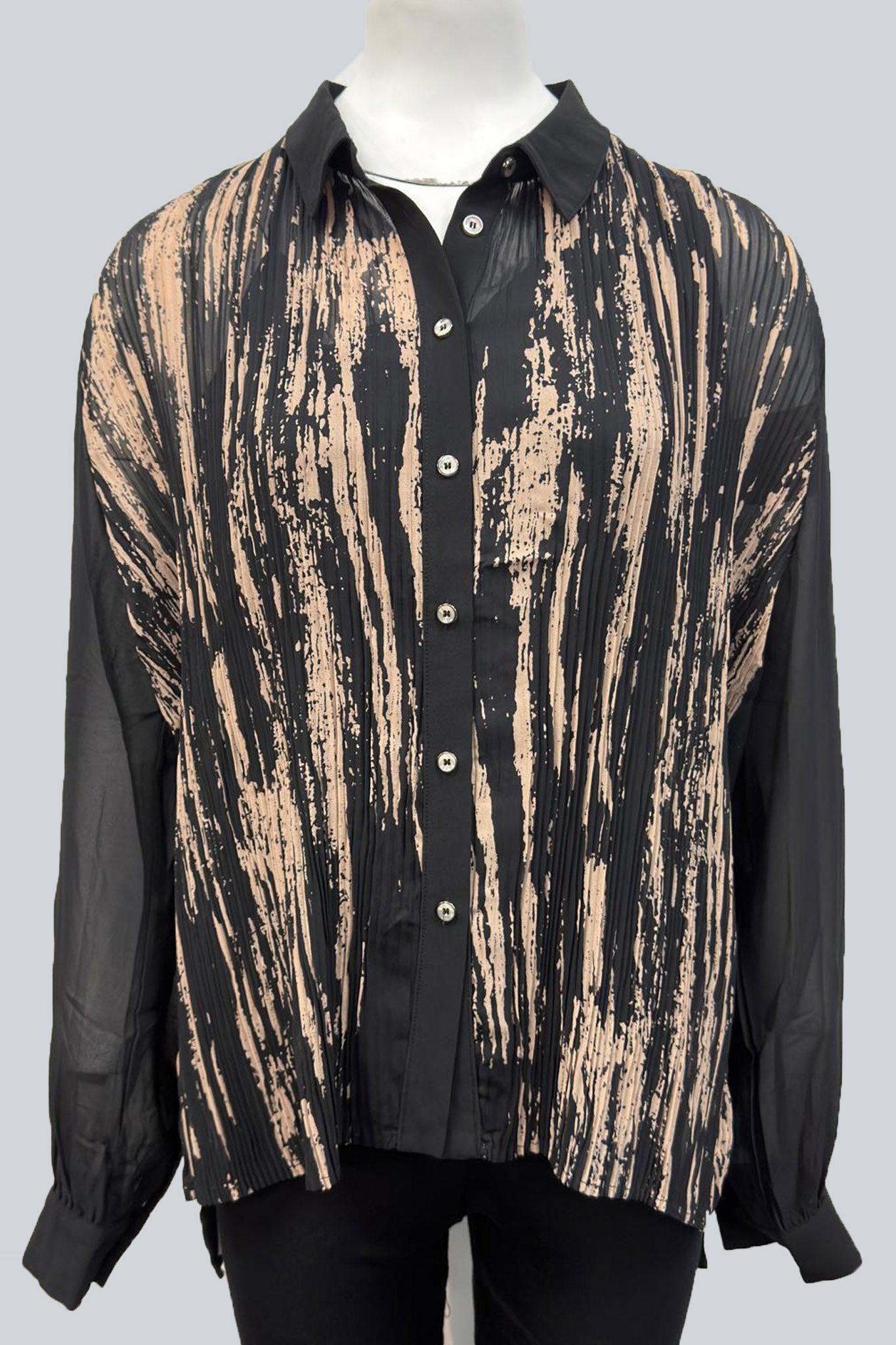Crinkle stripe print chiffon shirt top. Button tab sleeves.